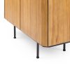 Aan de binnenzijde biedt de Malang kast verrassend veel opbergruimte met drie doorlopende vakken. Elk vak is zorgvuldig ingedeeld met een hoogte van 38 cm, een diepte van 33 cm en een totale breedte van 85 cm, perfect voor het netjes opbergen van je mooiste spullen. Het verticale latje halverwege zorgt voor een extra stijlvol accent en een subtiele verdeling van het vak van 40 cm breed, waardoor je flexibel kunt indelen.