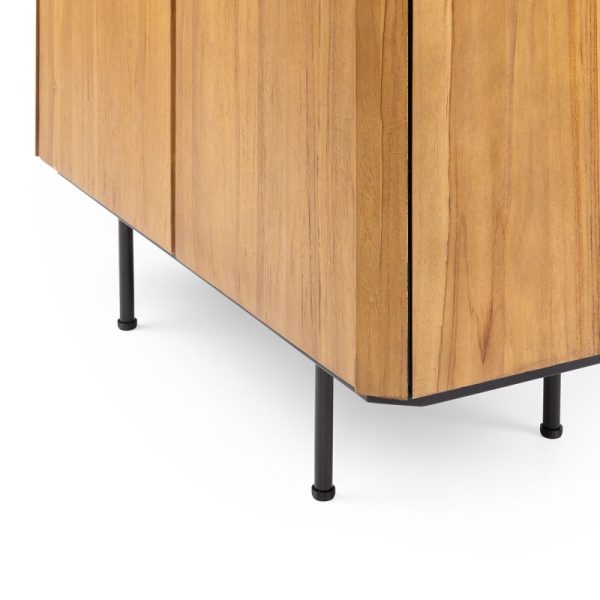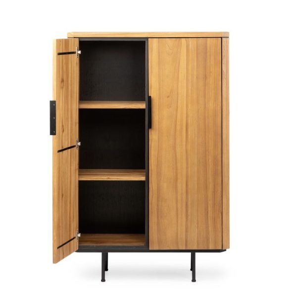 Aan de binnenzijde biedt de Malang kast verrassend veel opbergruimte met drie doorlopende vakken. Elk vak is zorgvuldig ingedeeld met een hoogte van 38 cm, een diepte van 33 cm en een totale breedte van 85 cm, perfect voor het netjes opbergen van je mooiste spullen. Het verticale latje halverwege zorgt voor een extra stijlvol accent en een subtiele verdeling van het vak van 40 cm breed, waardoor je flexibel kunt indelen.