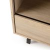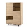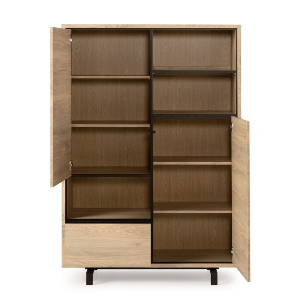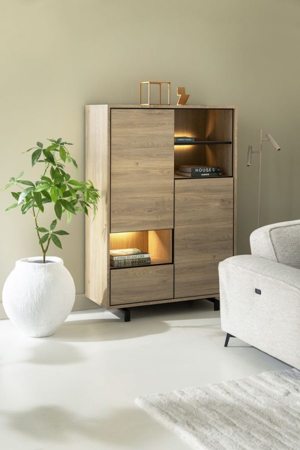 Achter de twee deuren en in de lade berg je eenvoudig spullen uit het zicht op, terwijl de drie open vakken ruimte bieden voor boeken, accessoires of servies. Zo wissel je gesloten en open opbergruimte op een natuurlijke manier af. De deuren en lade zijn voorzien van een push-to-open systeem en de lade sluit met softclose, wat zorgt voor een soepele en gedempte beweging in het dagelijks gebruik. De palmira bergkast helpt je om je woonkamer overzichtelijk te houden, met een uitstraling die warmte en functionaliteit in balans brengt.