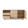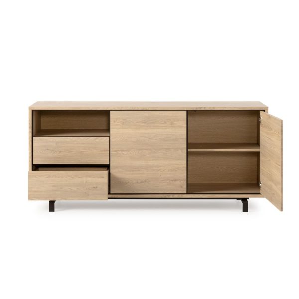 Naast uitstraling is er gedacht aan gebruiksgemak. De deuren en lades zijn voorzien van een push-to-open systeem, waardoor handgrepen overbodig zijn en het front mooi rustig blijft. De lades sluiten met softclose, wat zorgt voor een gedempte en prettige beweging bij dagelijks gebruik. Of je het Palmira dressoir nu in de woonkamer plaatst voor servies en woonaccessoires of gebruikt als praktische opberger in de eetkamer, je haalt een functioneel meubel in huis dat comfort en uitstraling op een natuurlijke manier samenbrengt.