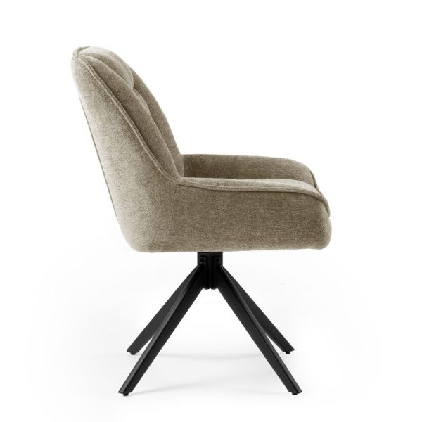Met de 180 graden draaifunctie en het auto return systeem is de Riff niet alleen mooi, maar ook bijzonder praktisch. De comfortabele zitting van polyether schuim maakt de stoel ideaal voor lange tafelmomenten. De verfijnde stiknaden in de rugleuning zorgen voor extra karakter.