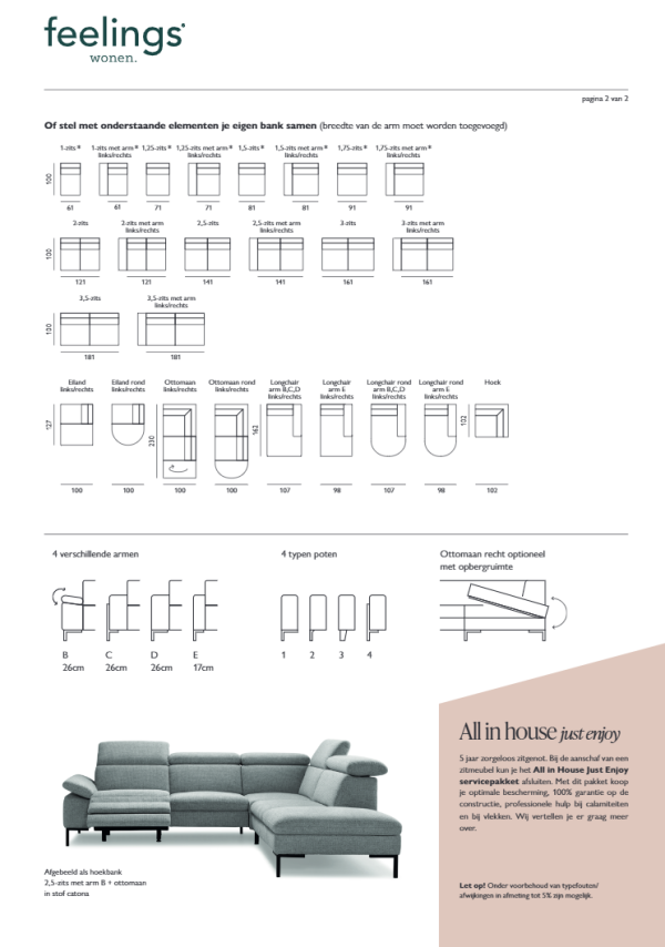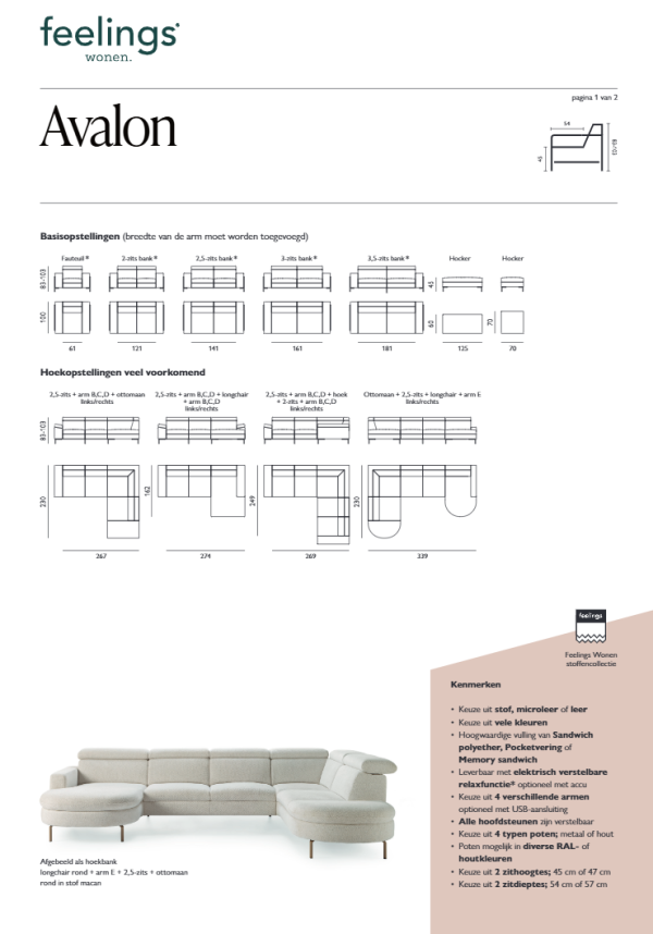 Bekijk het productblad van de Avalon om een nog beter beeld te krijgen bij alle verschillende opties van de bank.