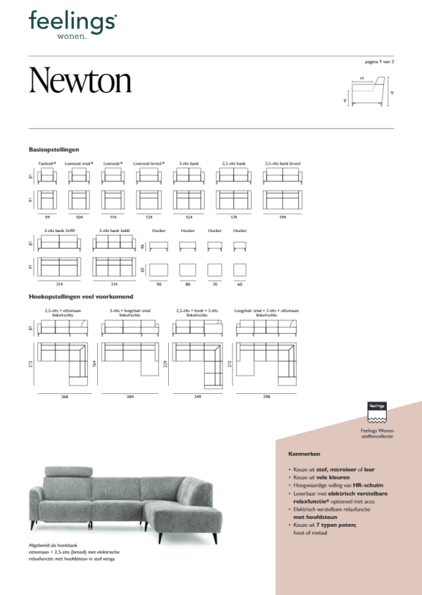De Newton bank is een stijlvolle blikvanger die moeiteloos luxe en comfort combineert. In deze uitvoering is hij bekleed met de zachte Venga-stof in de kleur Zinc – een tijdloze, warme tint die zich perfect laat combineren in elk interieur. Zoals afgebeeld, uitgevoerd als 2,5-zits met relaxfunctie en een ottomaan, nodigt hij uit om na een lange dag heerlijk te ontspannen. De metalen poten geven een moderne, verfijnde touch, terwijl de HR-schuimvulling zorgt voor een veerkrachtig zitcomfort dat jarenlang meegaat.