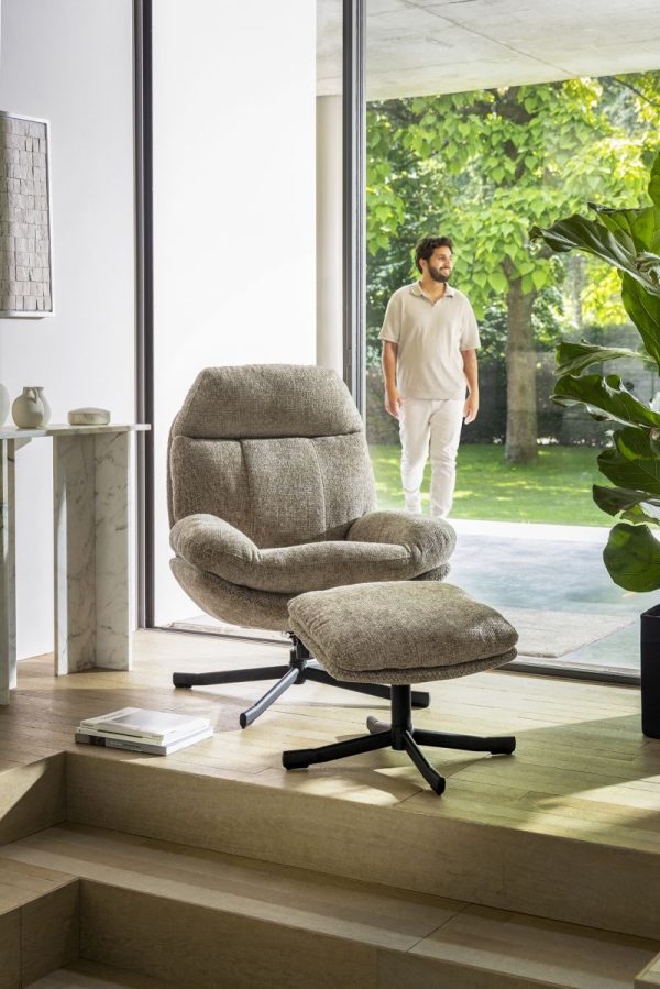 Uniek aan de Lenn is dat de hele kuip naar achteren beweegt wanneer je achteroverleunt – een relaxfunctie die zorgt voor nog meer ontspanning. En dankzij de draaibare poot draai je gemakkelijk mee met het gesprek of de ruimte. De bijpassende hocker wordt standaard meegeleverd in dezelfde kleur en stof, waardoor de fauteuil en hocker samen één harmonieus geheel vormen.