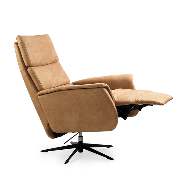 Relaxfauteuil Ian handverstelbaar met gaslift bekleed met stof jeep. In diverse stoffen en kleuren leverbaar. Ook in leer leverbaar