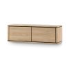 Achter de twee kleppen berg je eenvoudig apparatuur en andere spullen uit het zicht op. De kleppen zijn voorzien van een push-to-open systeem, waardoor het front greeploos blijft en het geheel strak oogt. Cornwall is bovendien personaliseerbaar: je kunt kiezen uit diverse kleuren, zodat het tv-dressoir aansluit bij jouw woonstijl. Liever geen zwevend model? Dan kun je ervoor kiezen om poten bij te bestellen en het meubel staand te plaatsen. Zo stem je Cornwall af op jouw ruimte en manier van wonen.