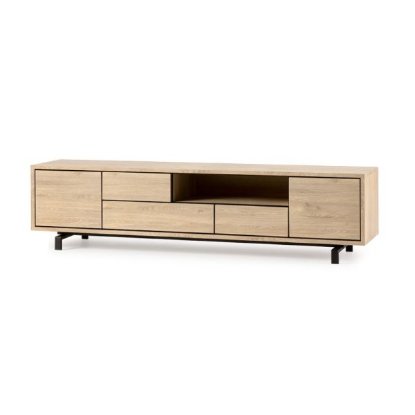 Ook in gebruik is er aandacht voor comfort. De deuren en lades zijn voorzien van een push-to-open systeem, waardoor het front rustig en greeploos blijft. De lades sluiten met softclose, wat zorgt voor een gedempte en soepele beweging. Het open vak biedt ruimte voor apparatuur, terwijl je snoeren netjes uit het zicht kunt houden. Zo combineert dit tv-dressoir praktische opbergruimte met een doordachte uitstraling. Met palmira kies je voor een tv-meubel dat je woonkamer overzicht en sfeer geeft, zonder dat het de aandacht opeist.